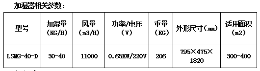 设备选型:柜式湿膜加湿器LSMG-40-D,加湿量:40kg/h